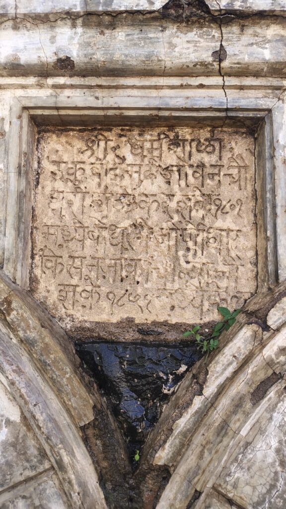 या धर्मशाळेवर कोरलेल्या शिलालेखाचे वाचन सतीशिळा व विरगळ अभ्यासक अनिल दादा दुधाने यांनी केले. त्या शिलालेखावर खालील मजकूर कोरलेला आहे –